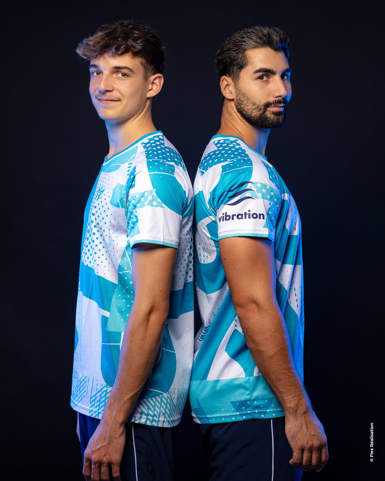Le maillot d’échauffement 2025-2026 des Septors. Portez en avant-match par les bleus, met toi en mode 7P !
